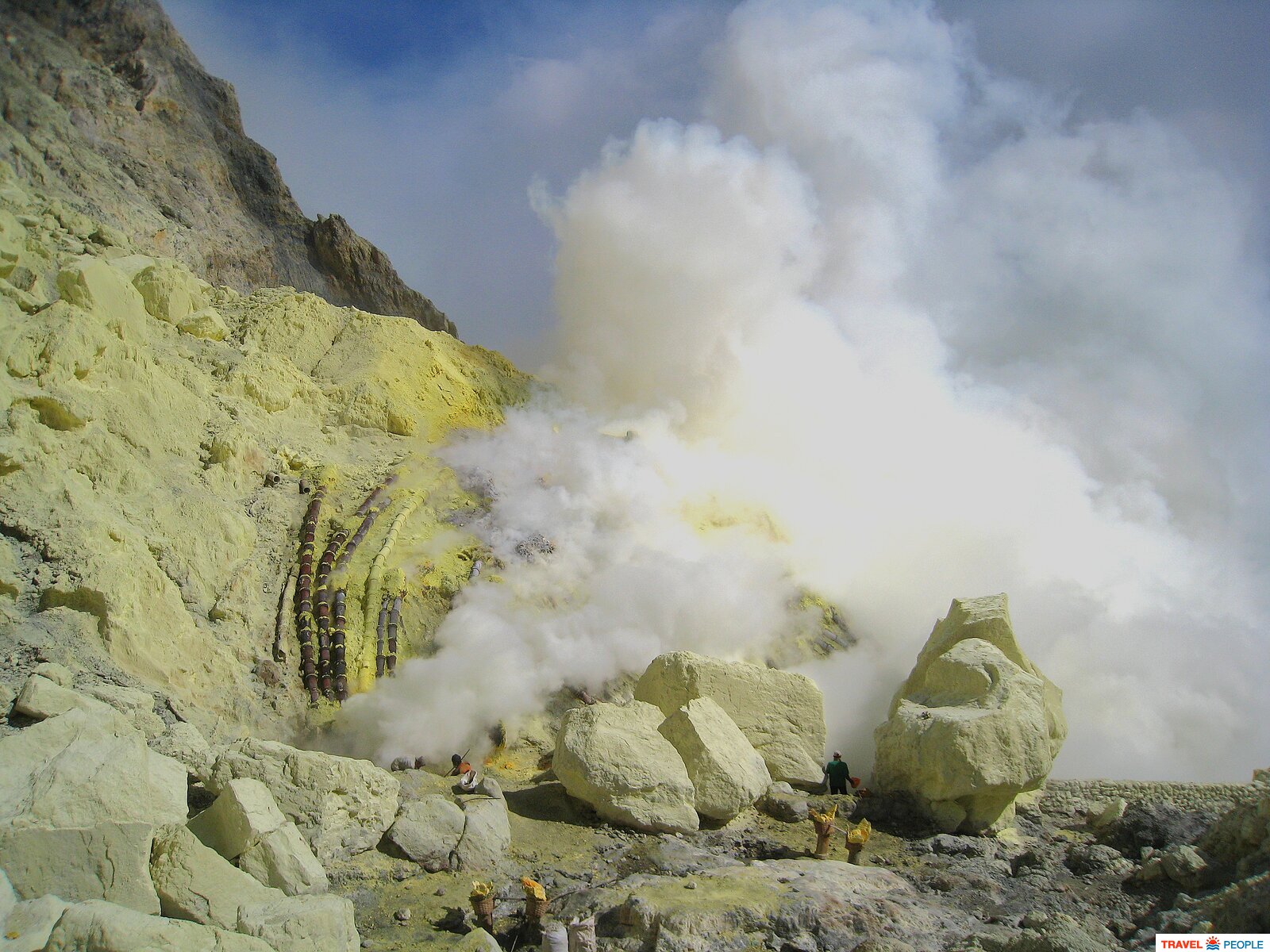 Место, где ведётся добыча серы в кратере вулкана Иджен.