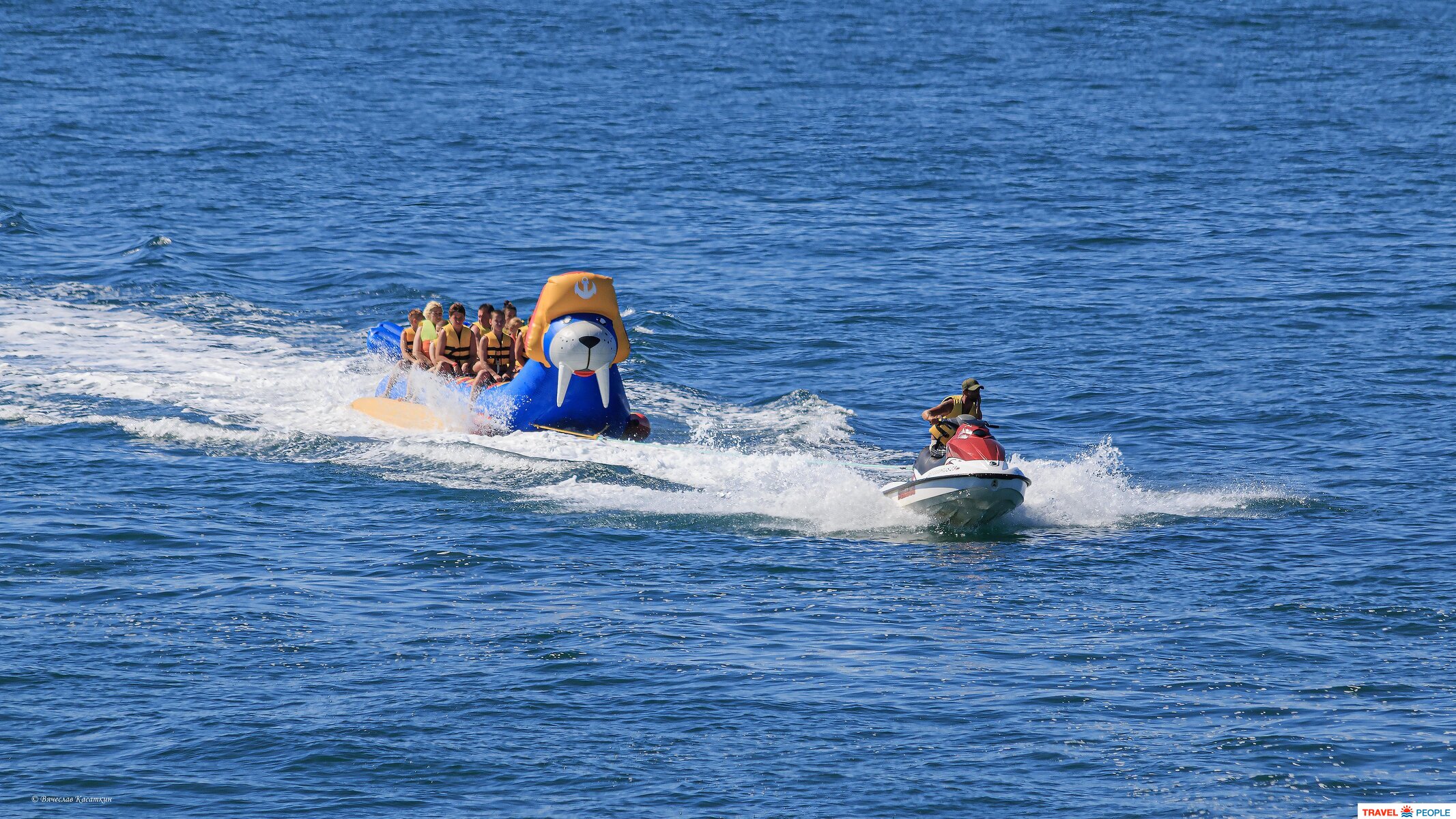 «Водный банан» — это надувной многоместный аттракцион вытянутой формы, который буксируется по воде за катером или гидроциклом.